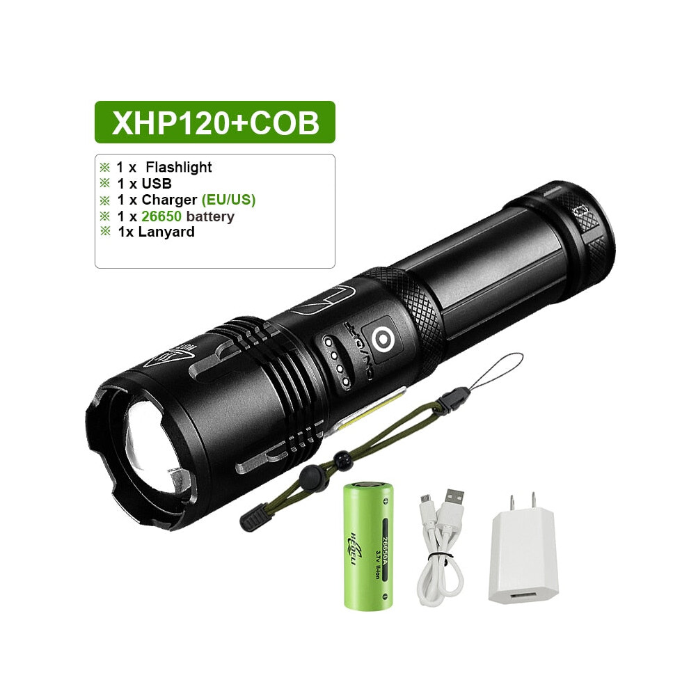 (E-XHP120-26650) Powerful Led Flashlight XHP90 High Power Torch light Rechargeable Tactical flashlight 18650 Usb Camping Lamp