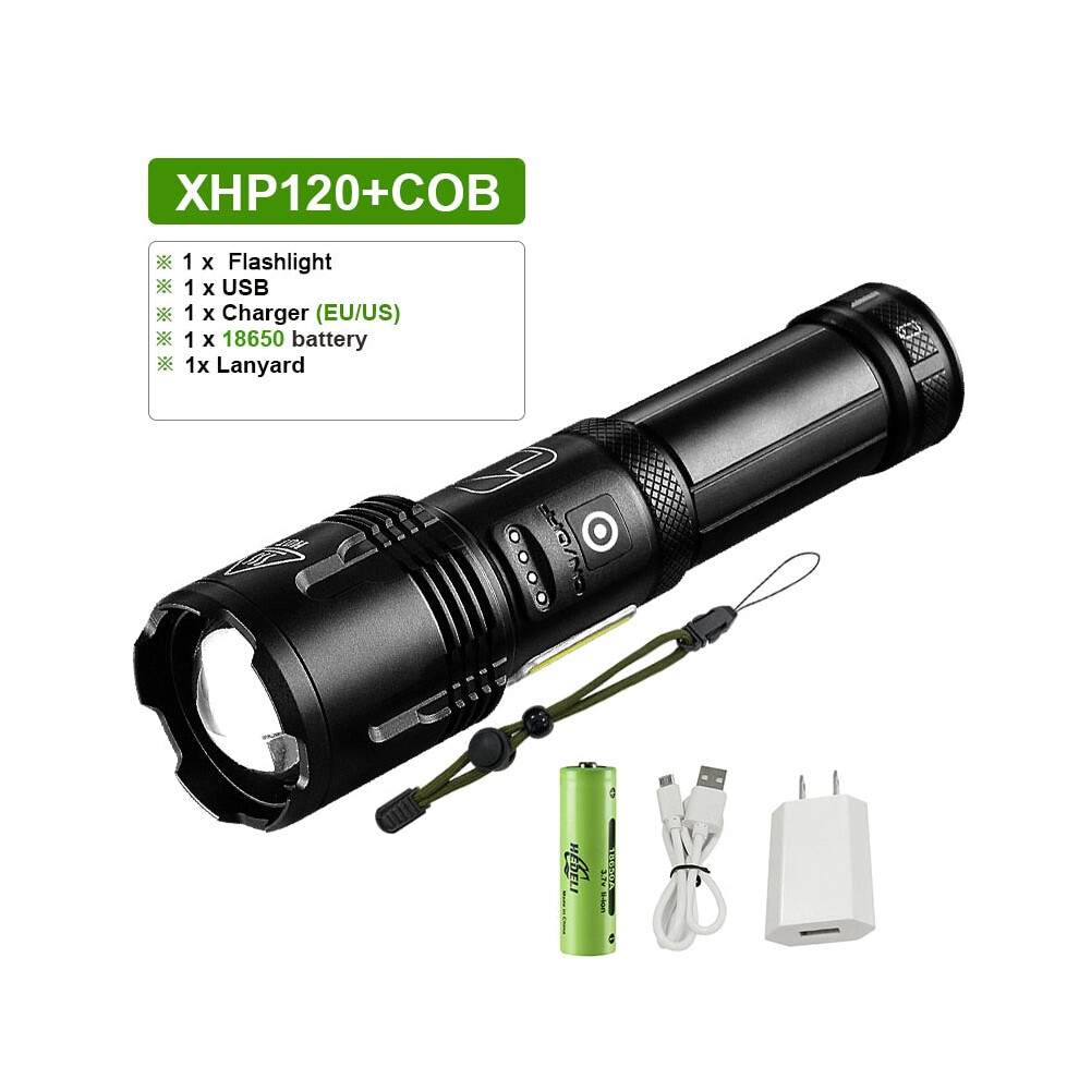 (XHP120 B) Super XHP120 Powerful Led Flashlight XHP90 High Power Torch Light Rechargeable Tactical Flashlight 18650 Usb Camping Lamp