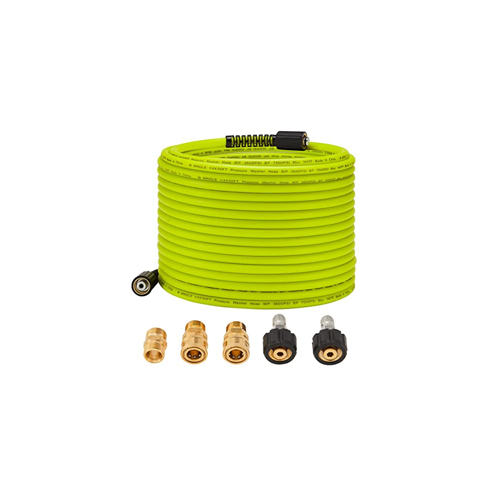 M MINGLE Pressure Washer Hose 50 FT x 1/4" - Replacement Power Wash Hose with M22 14mm Stainless Steel Quick Connect Power Washer Adapter Sets - 3600