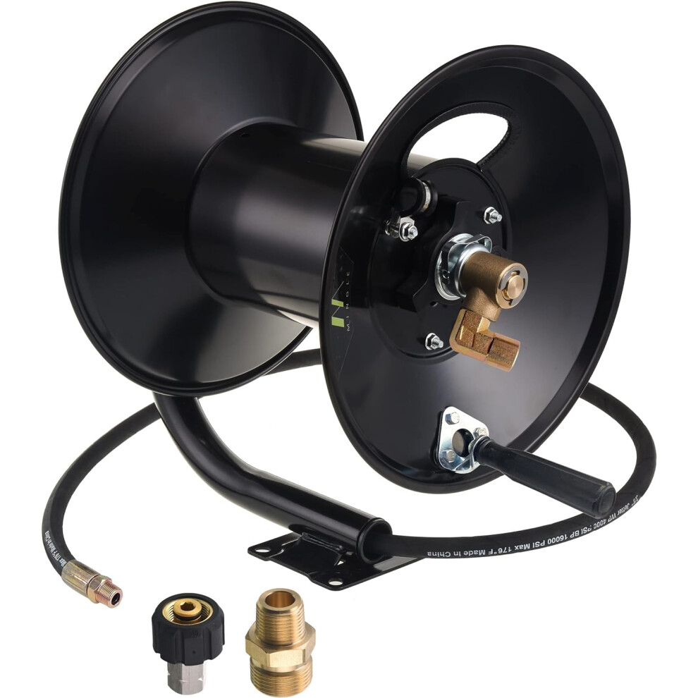 M MINGLE High Pressure Washer Hose Reel 150ft, Heavy Duty Steel Hose Reel, Manual Crank Power Washer Hose Reel with 3/8" Pressure Wash Hose, Swivel