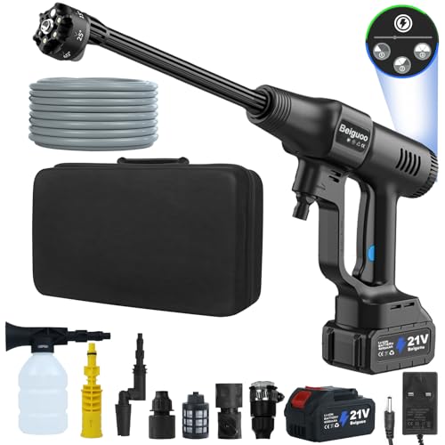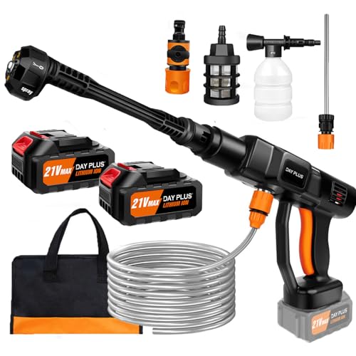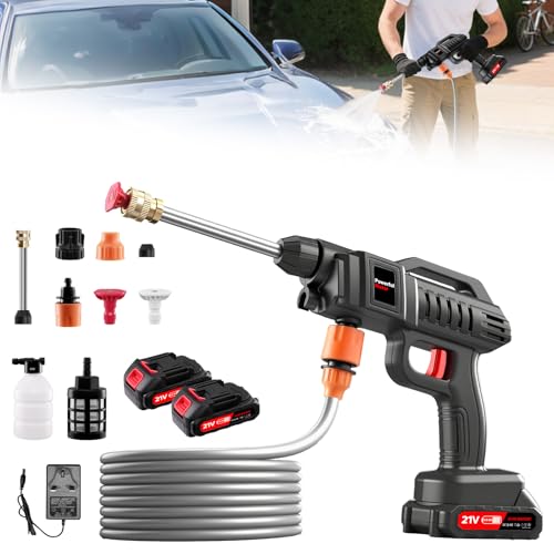 Cordless Pressure Washer, 21V Cordless Power Washer Kit 1500W Cordless High Pressure Washer Gun with 2 Nozzle, 16.5ft Hose, 2 Batteries, Battery Jet pressure Washer for Car Floor Gardening Cleaning