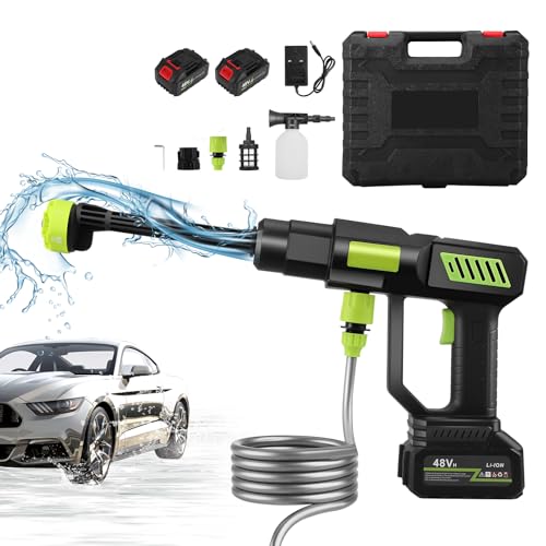 Portable Cordless High-Pressure Washer, 21V Handheld Washer Kit, Cordless Power Washer with 2 Nozzle, 2 Battery, 5m Hose Cordless Power Washer, Portable Jet Wash for Car Floor (2 Batterie)
