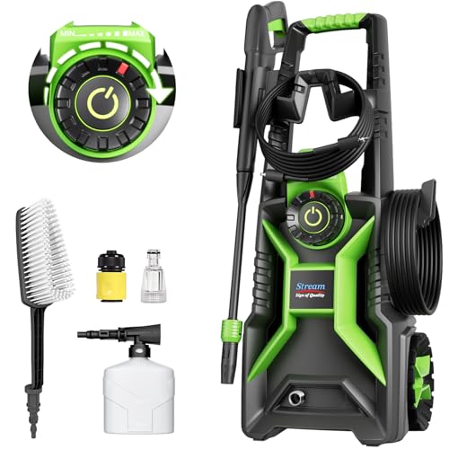 Pressure Washers with Adjustable Pressure Switch,1900W Max 150Bar Jet Washers Pressure Washers with Adjustable Nozzle,Brush,Foam Cannon, Power Washer for Cars, Fences, Patios and Driveway