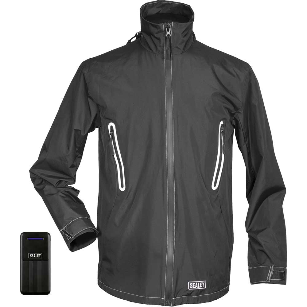 Sealey 5v Heated Rain Jacket and 20ah Power Bank Black XL