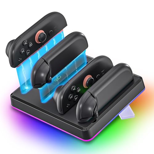 Switch Controller Charger for 4 Joycons with 9 RGB Light Modes, Joy con Charger Stand with LED Indicators, Switch Charging Dock for Joycon Charging Game Boy Games(Not for Joycon 2)