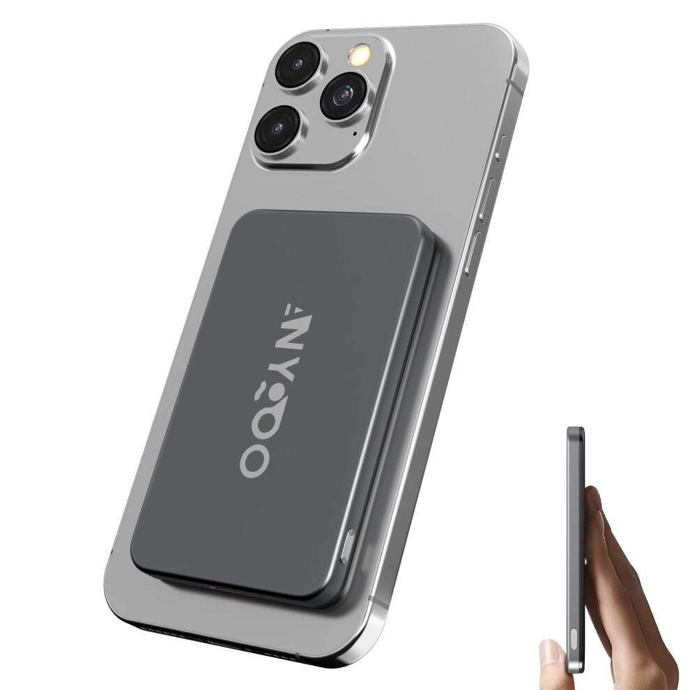 ANYQOO Magsafe Power Bank, Ultra-Slim 5000mAh Magnetic Power Bank with 22.5W USB-C PD Fast Charging, Portable Wireless Powerbank, Compatible with
