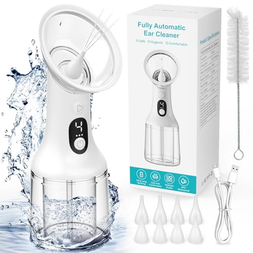 Automatic Ear Wax Removal, Upgrade USB Electric Water Powered Ear Cleaner with 4 Cleaning Modes IPX7 Waterproof Ear Irrigation System Reusable Ear Flushing Cleaning Tool for Kids Adults-White