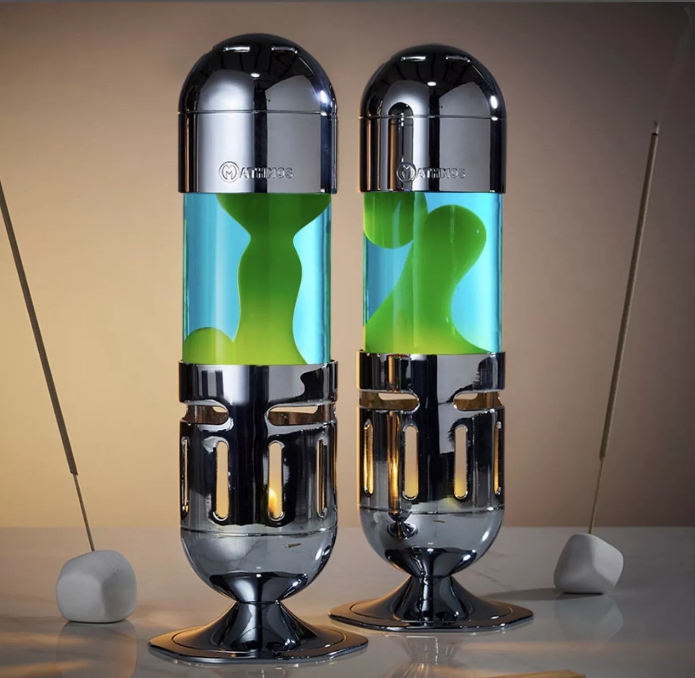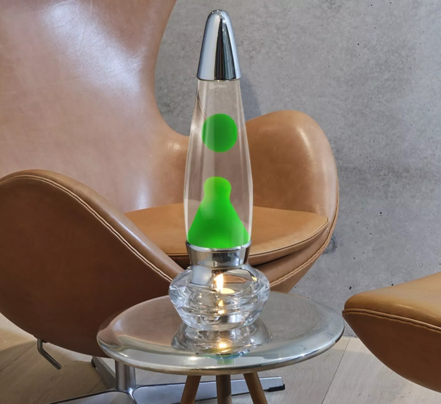 Mathmos EVO CANDLE powered Lava Lamp With GREEN Wax In CLEAR Liquid