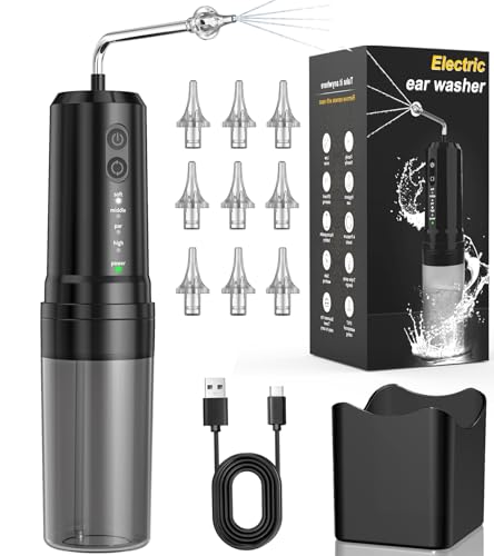 Ear Wax Removal Kit,Wolady Electric Water Powered Ear Cleaner with 3 Cleaning Modes,Electric Ear Irrigation Flushing Kit IPX7 with 8 Replaceable Tips USB Rechargeable for Adult Kids,Black