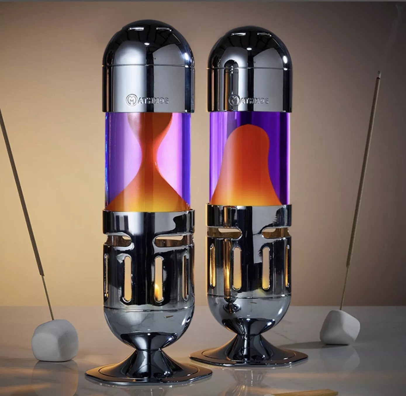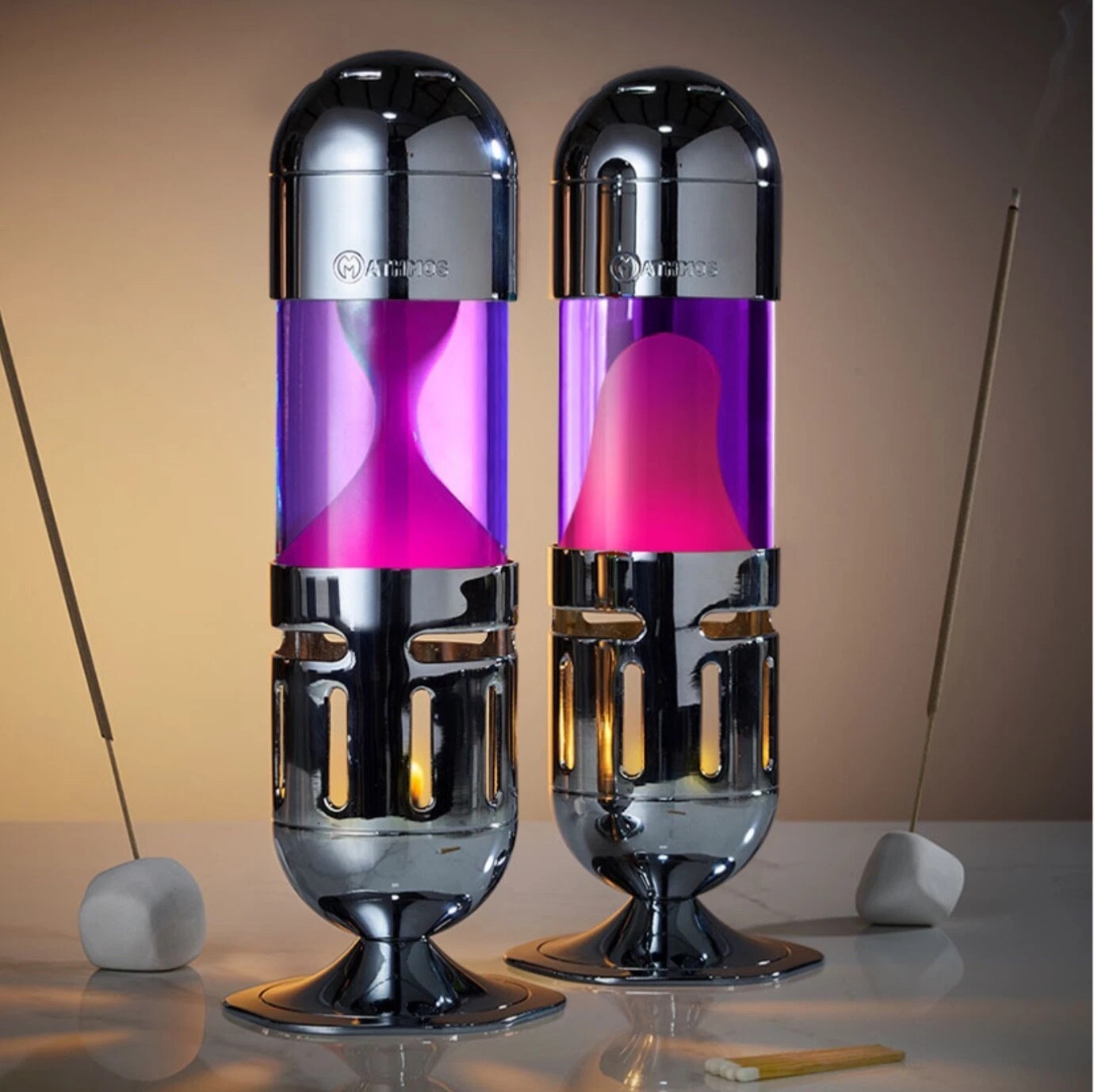 Mathmos EVO CANDLE powered Lava Lamp With BLACK PLUM Wax In CLEAR Liquid