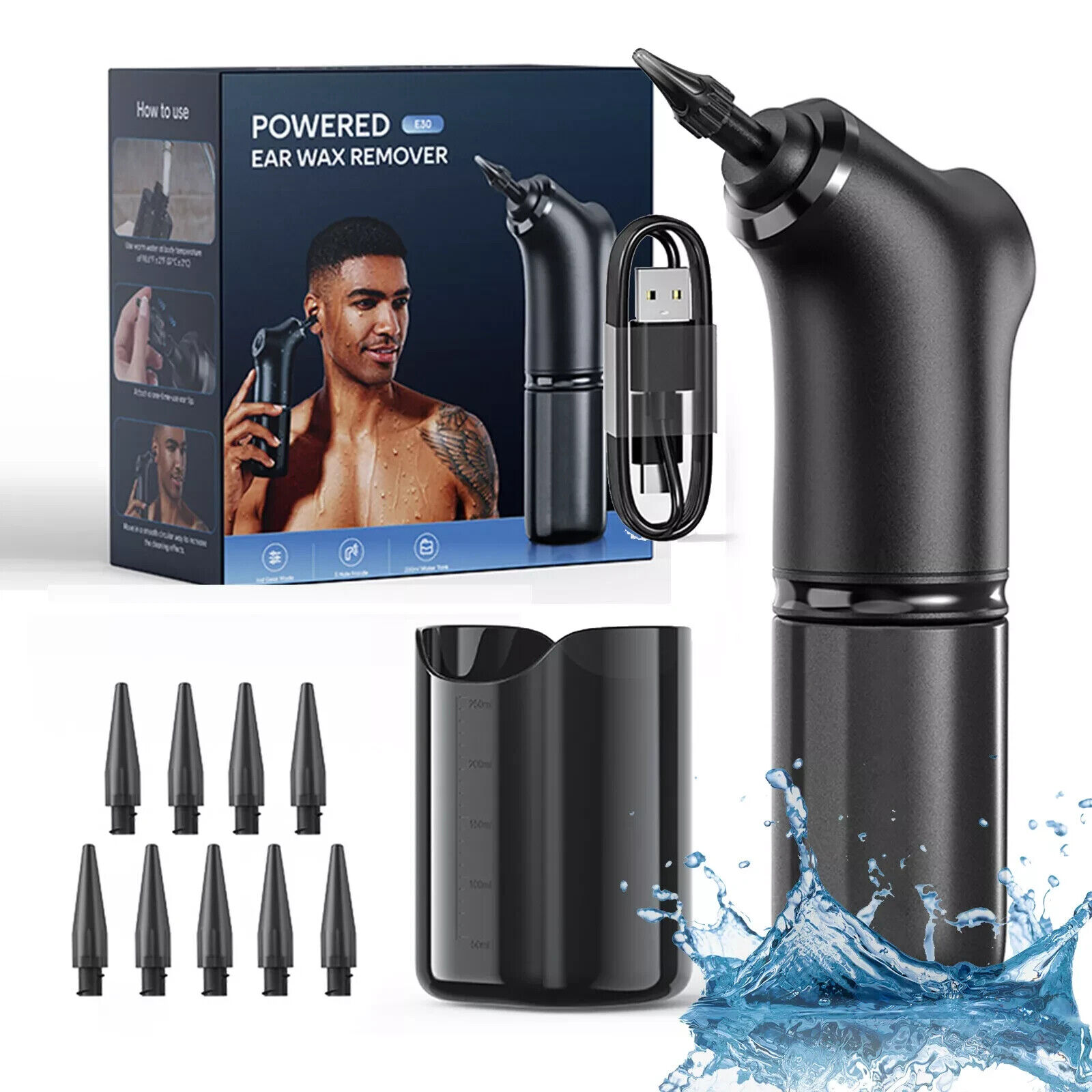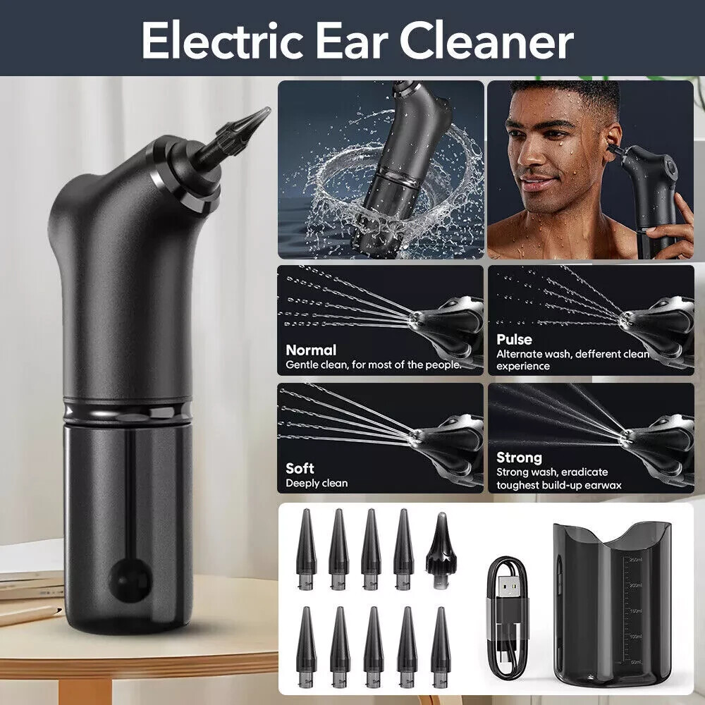 Electric Ear Wax Removal Kit With 12pcs Nozzle Water Powered Rechargeable Sa CUT