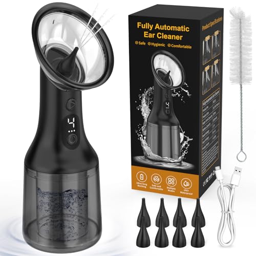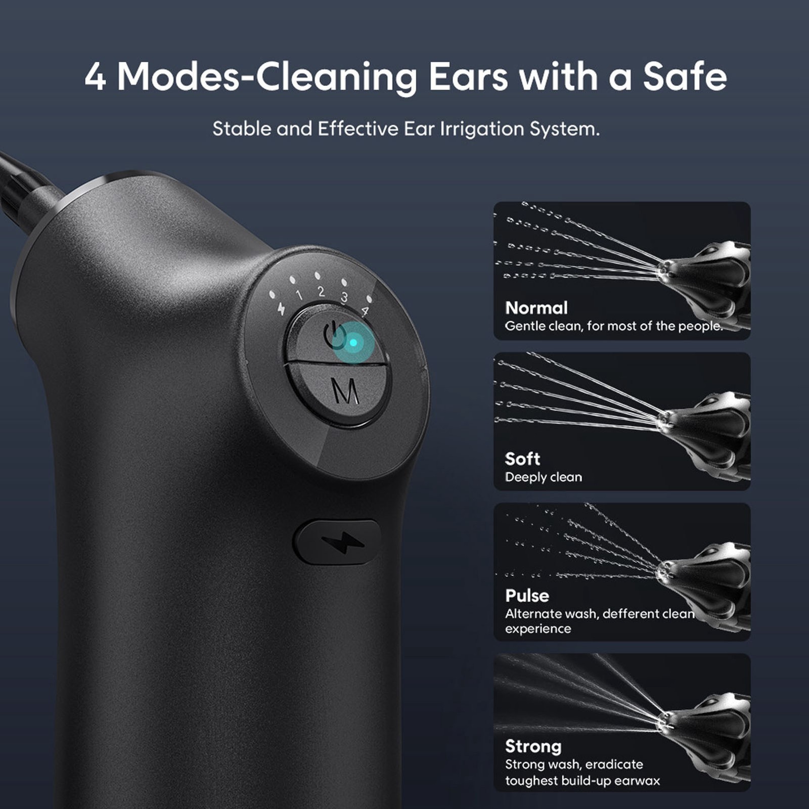 Automatic Ear Wax Removal,Upgrade USB Electric Water Powered Ear Cleaner with 4 Cleaning Modes IPX7 Waterproof Ear Irrigation System Reusable Ear Flushing Cleaning Tool for Kids Adults-Black