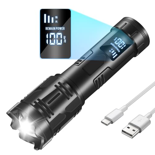 Jayxinli Torches LED Super Bright 500000 Lumen Rechargeable, Powerful Torch with 5000 mAh Rechargeable Battery, 5 Lighting Modes with Zoom and LCD Power Display