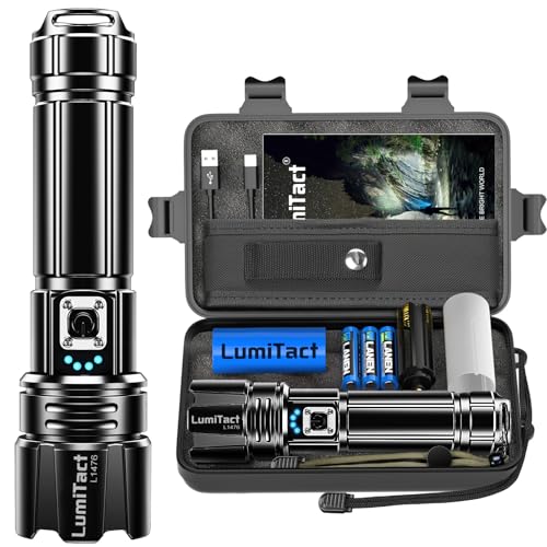 Jayxinli Torches LED Super Bright with Magnetic, 500000 Lumens High Power Rechargeable Torch with LCD Digital Display, Powerful Torch with 9 Light Modes and Zoom for Camping (with 5000mAh Battery)