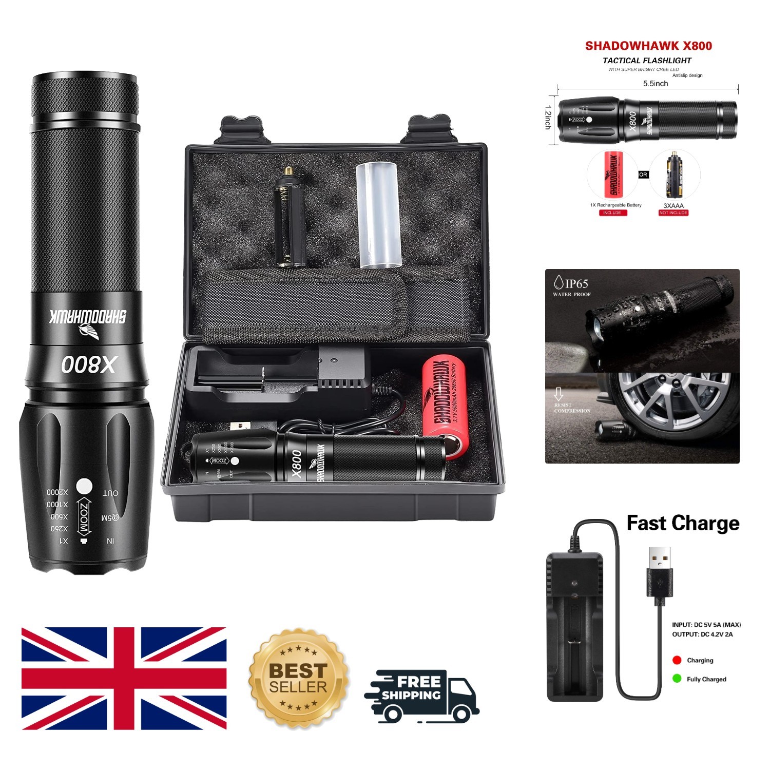 Torches LED Super Bright, IP65 Waterproof Powerful Torch, 10000Mah Long Lasting