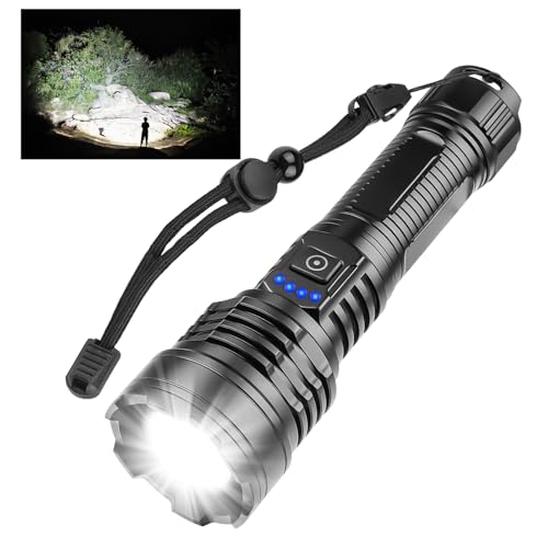 Jayxinli Torches LED Super Bright 1000000 Lumen Rechargeable, Powerful Torch 3 Light Modes and 10800 mAh Long-Lasting Battery, Zoomable, High Powered, Bright Torch for Camping & Home