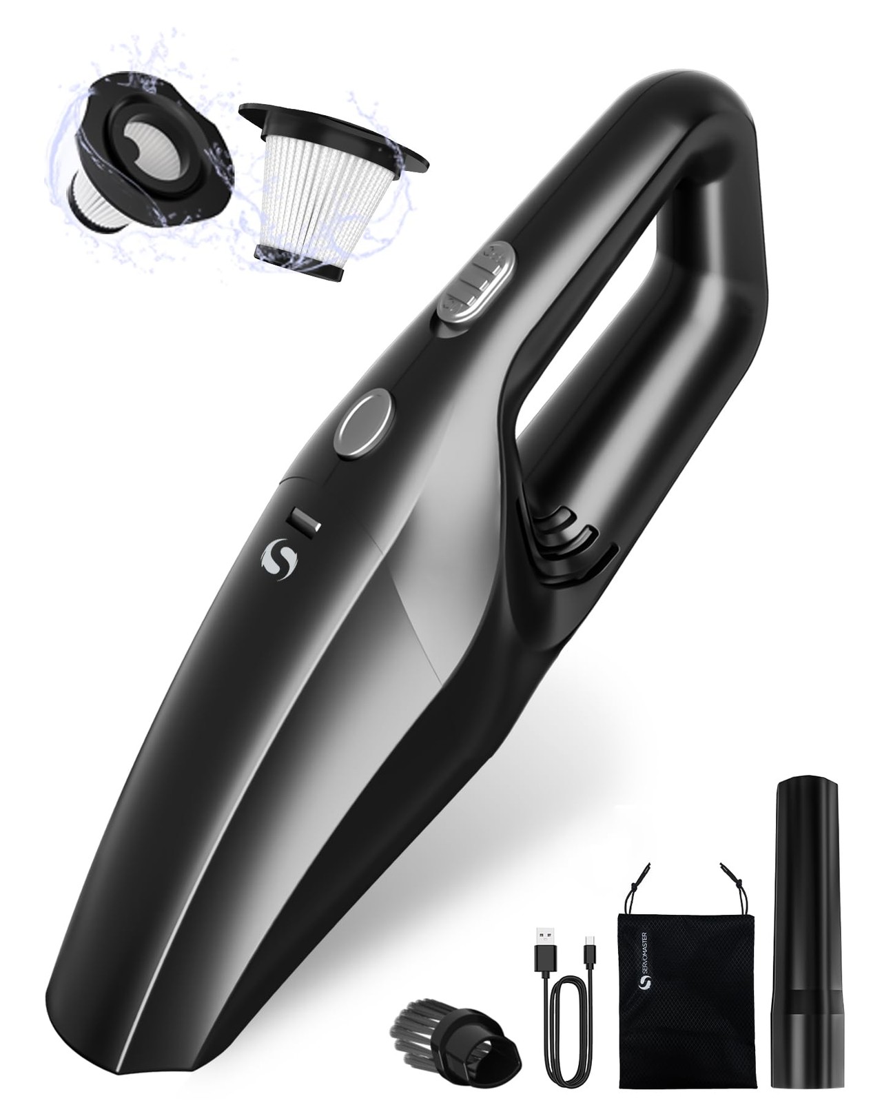 SERVOMASTER Handheld Vacuum Cleaner, Powerful Suction Car Vacuum Cleaner, Rechargeable Hand Held Vacuum Cordless with Washable HEPA Filter for Car, Home, Office, Pet Hair, Black