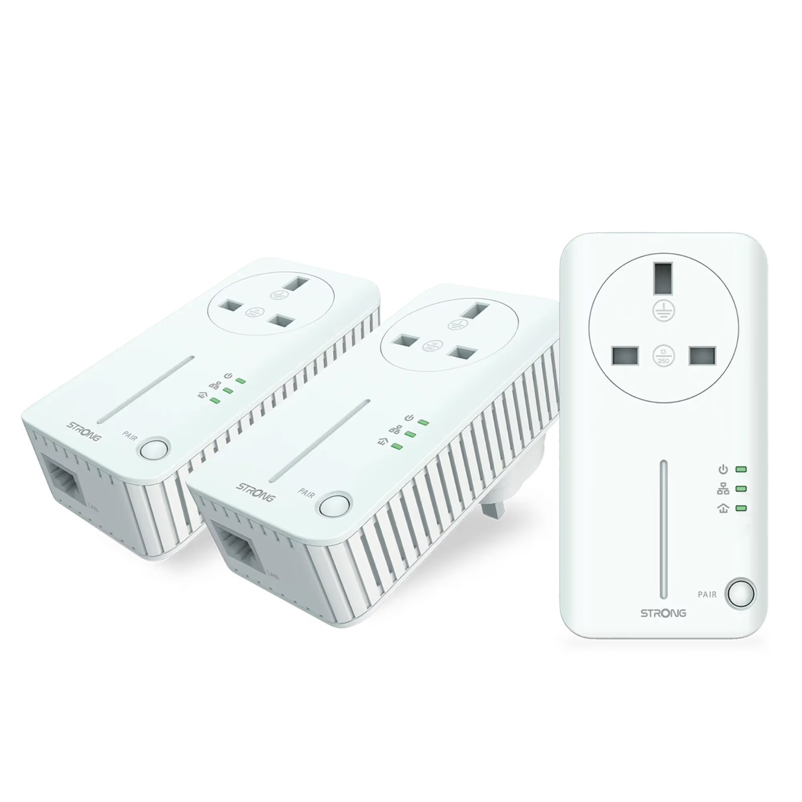 STRONG POWERL600DUOUKV2 AV600 Passthrough Powerline Kit, Data Transfer Speed Up to 600 Mbps, Pack of 3, Up to 300m range, No Configuration Required, UK Plug White