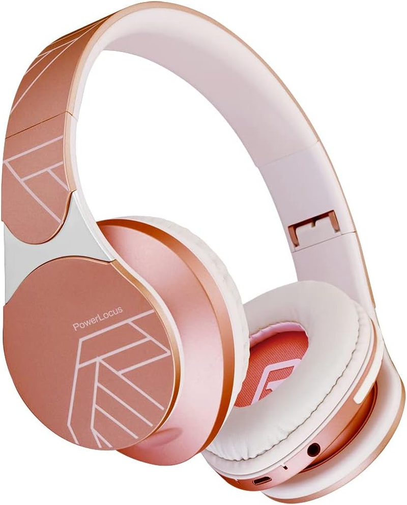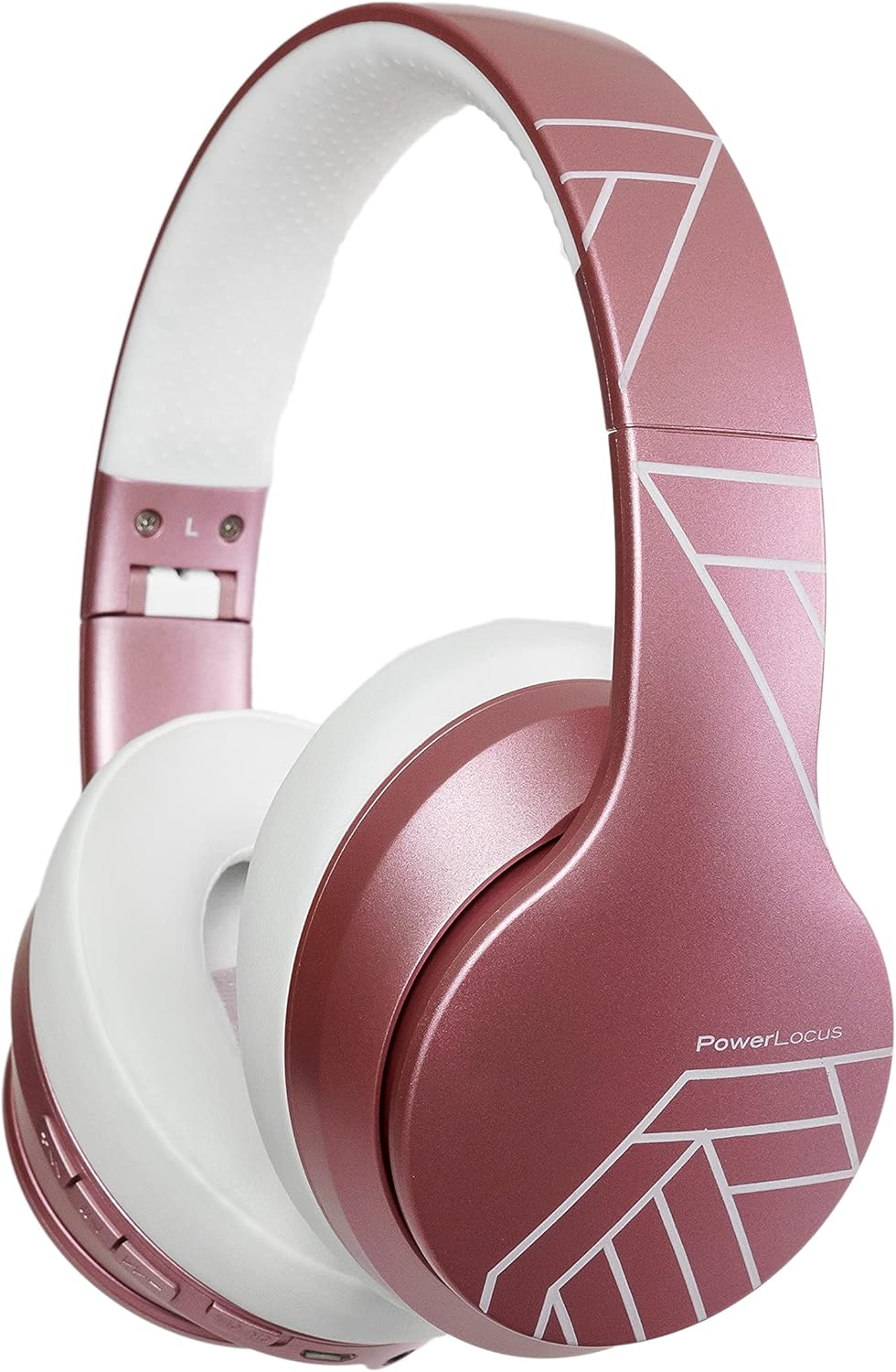 PowerLocus Bluetooth Headphones Over Ear, 50 Hours Playtime, 4 EQ Modes, Foldable Wireless Headphones with Microphone, HiFi Stereo, Lightweight & Wired Mode for Phone/Travel/PC (Rose Gold)