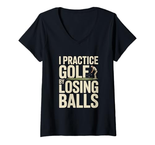 Women's I Practice Golf By Losing Balls V-Neck T-Shirt