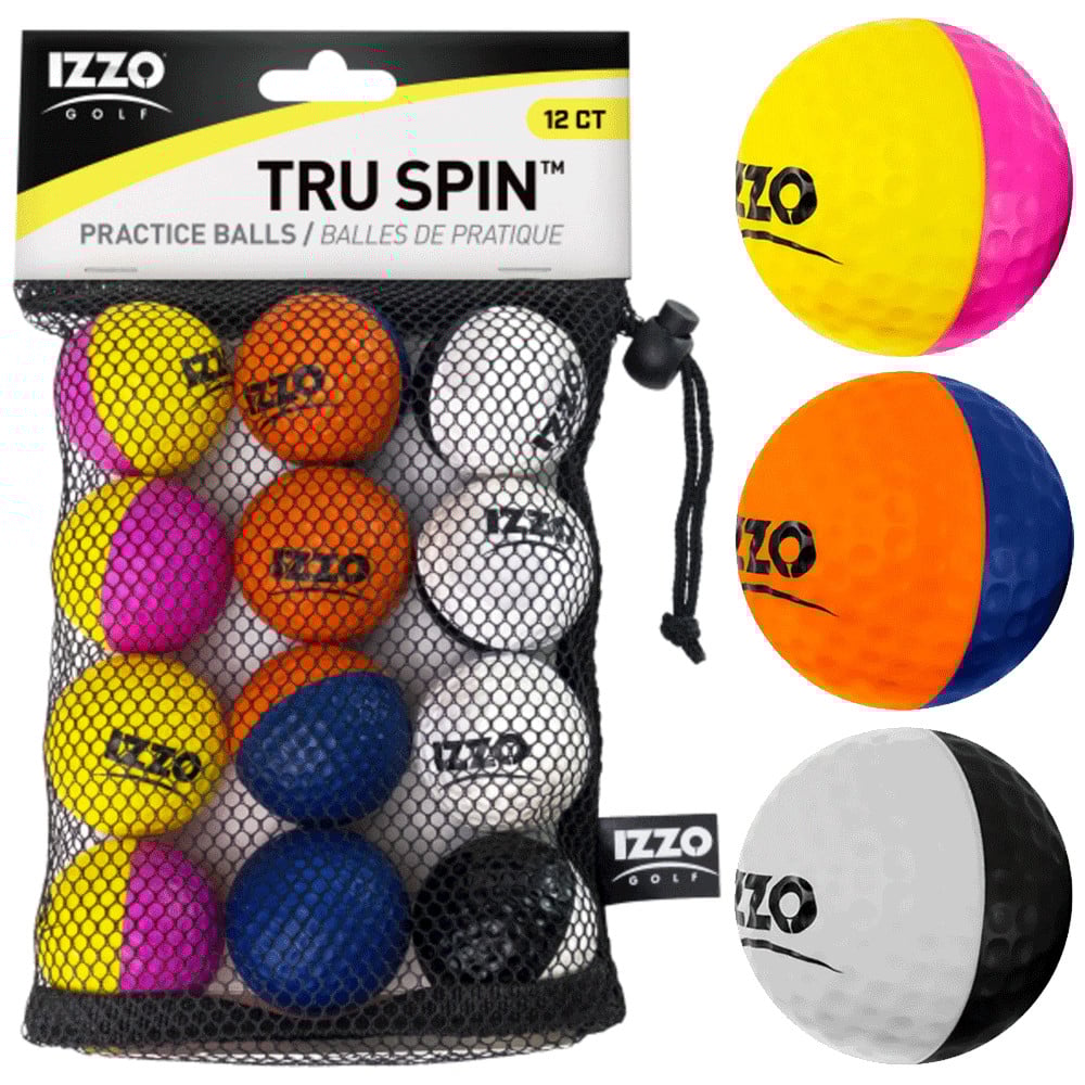 IZZO TRU-SPIN VISUAL ALIGNMENT 30% DISTANCE GOLF PRACTICE BALLS X 12 PACK
