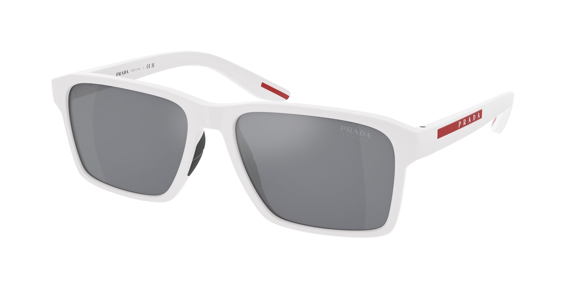 Prada Linea Rossa Man PS 05YS TWK40A Sunglasses Injected White Light blue Squared Mirrored Mirror