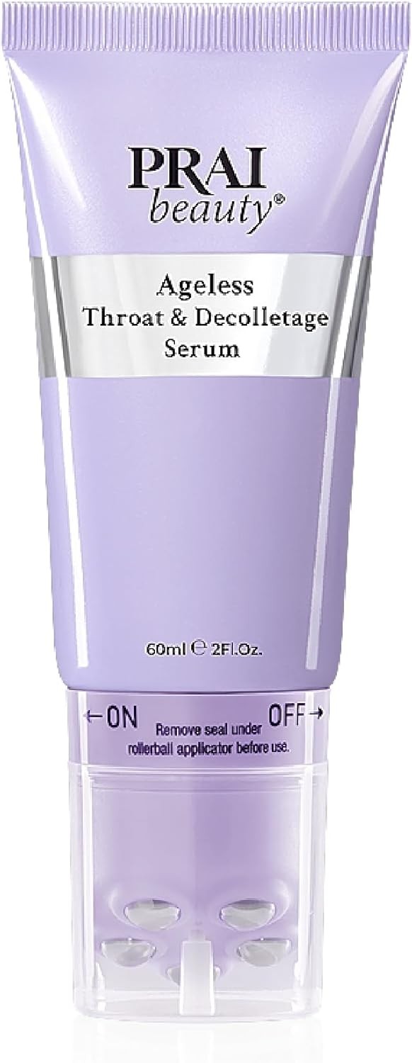 PRAI Ageless Throat & Decolletage Serum 120ml with Rollerball Applicator - Anti-Ageing, Collagen Boosting Skincare - Firms Skin, Smooths Wrinkles,