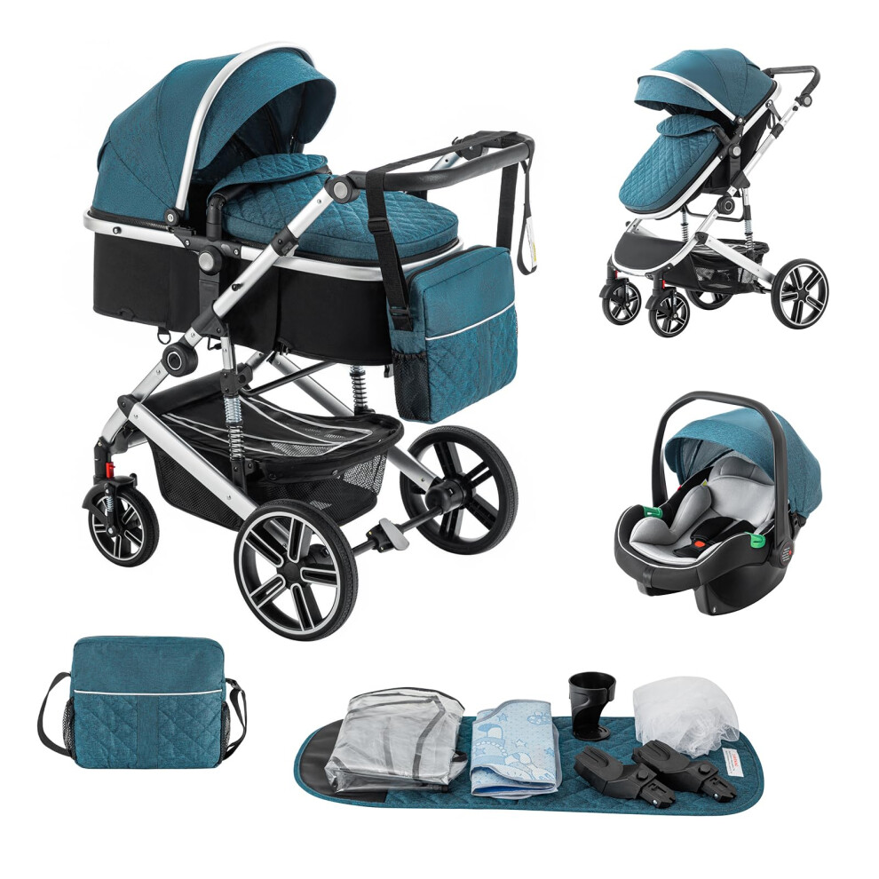 Lnhcrbs 3 in 1 Pram with Car Seat, Travel Stroller