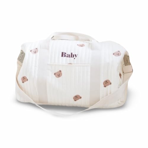 Maternity Labour Hospital Bag, Multi-Purpose baby Changing & Pram Bag, Neutral Teddy Bear Print Labour Essentials, Gender Neutral Baby Arrival Tote Overnight