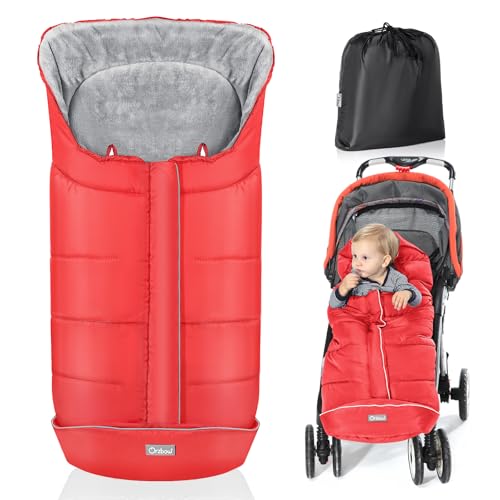 Orzbow Footmuff for Pushchair Universal, Large Pushchair & Pram Footmuffs with Drawstring, Waterproof Cosy Toes for Buggy with Warm Fleece, Anti-Slip Back, Reflective Strip, Easy Access, Red