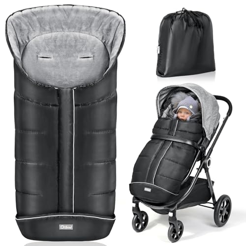 Orzbow Footmuff for Pushchair Universal, Large Pushchair & Pram Footmuffs with Drawstring, Waterproof Cosy Toes for Buggy with Warm Fleece, Anti-Slip Back, Reflective Strip, Easy Access, Black