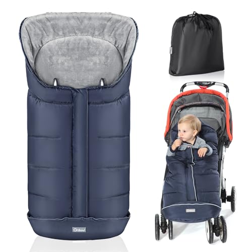 Orzbow Footmuff for Pushchair Universal, Large Pushchair & Pram Footmuffs with Drawstring, Waterproof Cosy Toes for Buggy with Warm Fleece, Anti-Slip Back, Reflective Strip, Easy Access, Blue