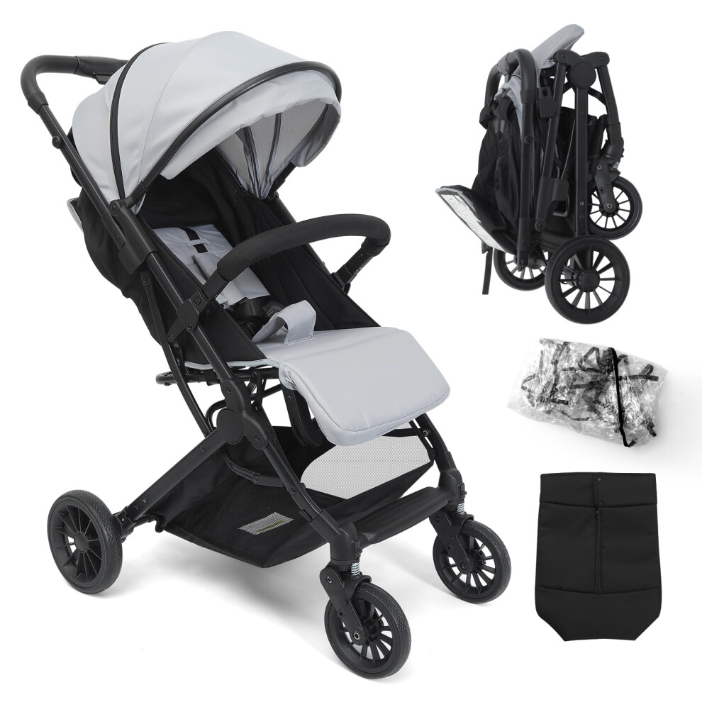 SOLIDEE Baby Stroller, Pushchair with Adjustable Seat, Compact Travel Pram Buggy with Footmuff, Pushchairs for 0-3 Years Old Toddlers with UPF50+ Can