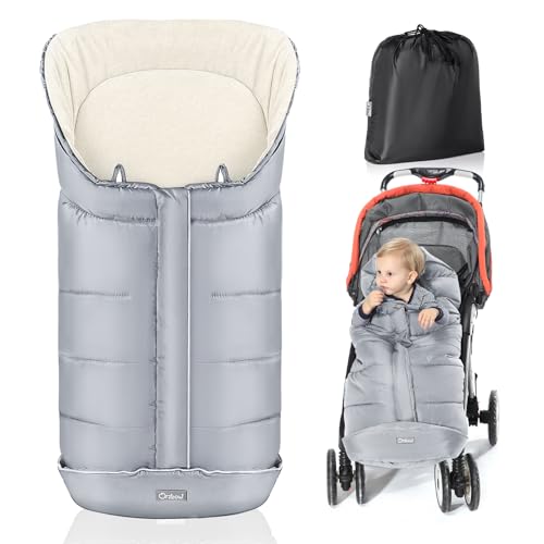 Orzbow Footmuff for Pushchair Universal, Large Pushchair & Pram Footmuffs with Drawstring, Waterproof Cosy Toes for Buggy with Warm Fleece, Anti-Slip Back, Reflective Strip, Easy Access, Grey