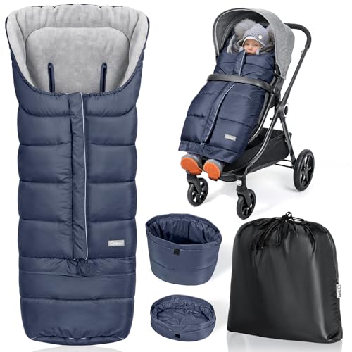 Orzbow Footmuff for Pushchair Universal Footmuff for Stroller, Adjustable Pushchair & Pram Footmuffs with Warm Liner, Machine Washable and Detachable, Waterproof Fabric, Blue