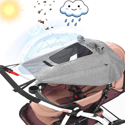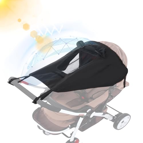 Baby Stroller Sun Shade Canopy with Viewing Window Universal Baby Pushchair Cover Waterproof Buggy Sunshade Pram Parasol UV Protection Awning Sun Shield Insect Bug Netting Cover