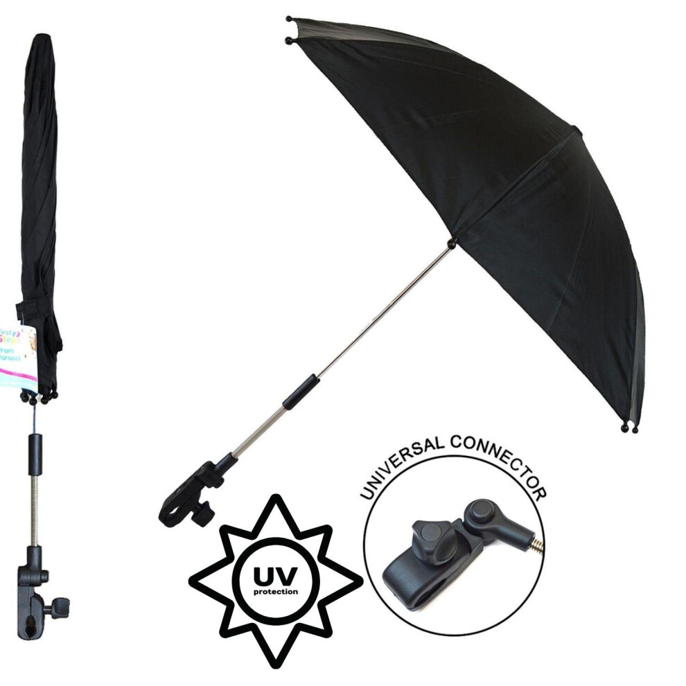 | Universal Pram Parasol | Pram Sun Shade | Baby Sun Protection | Pram Accessories | Black