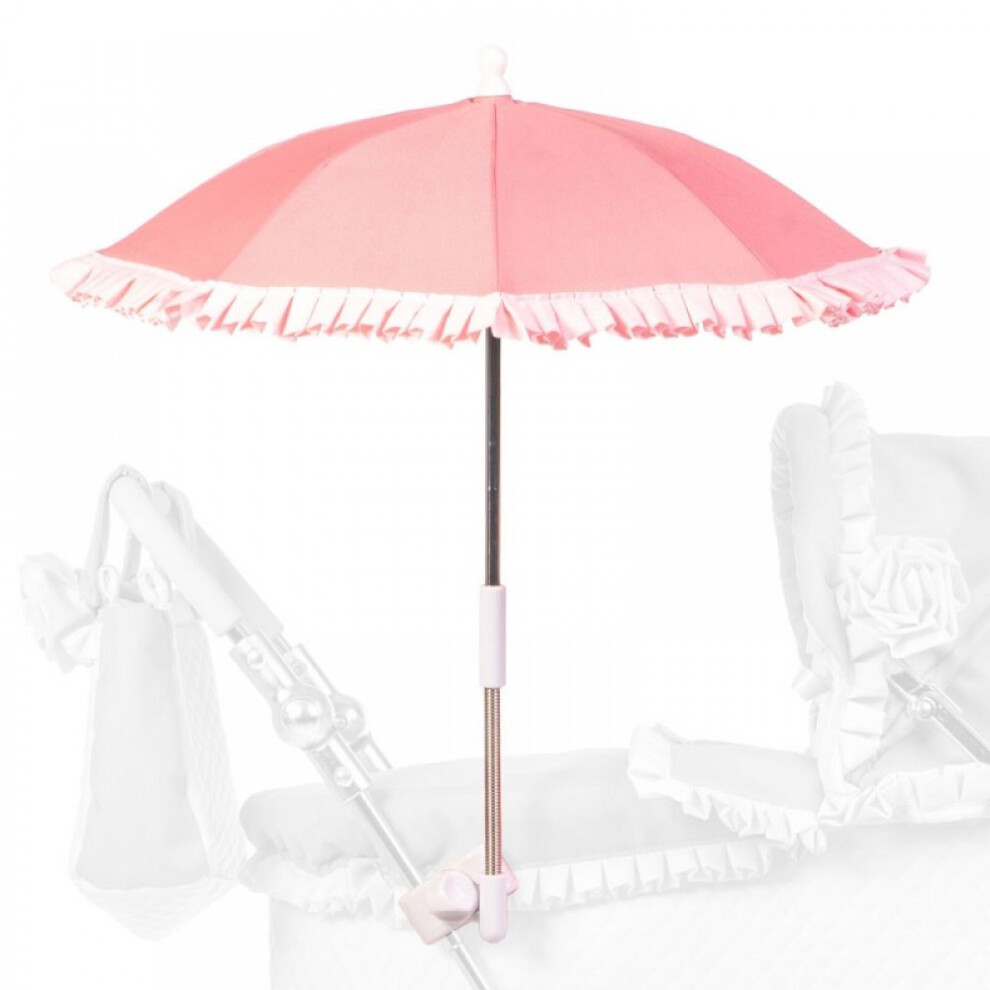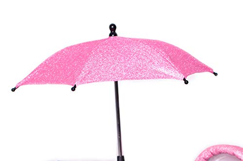 Roma Stephanie Dolls Pram Parasol, Universal Pram Compatibility, Pink Sparkle, Adjustable Clamp, Stylish & Durable Dolls Umbrella, Baby doll & Dolls Pram Accessories, Ages 3+