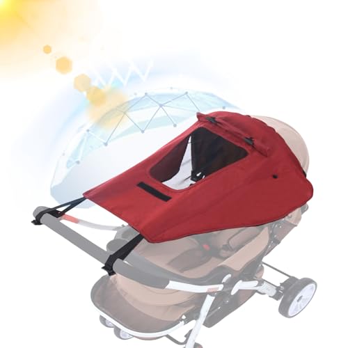 Furforstk Pram Sun Shade UV Protection 50+ Sun Shade for Pram Waterproof Stroller Parasol, Buggy Parasol Universal with Viewing Window and Shades Wing, for Strollers, Easy to Install (Red)