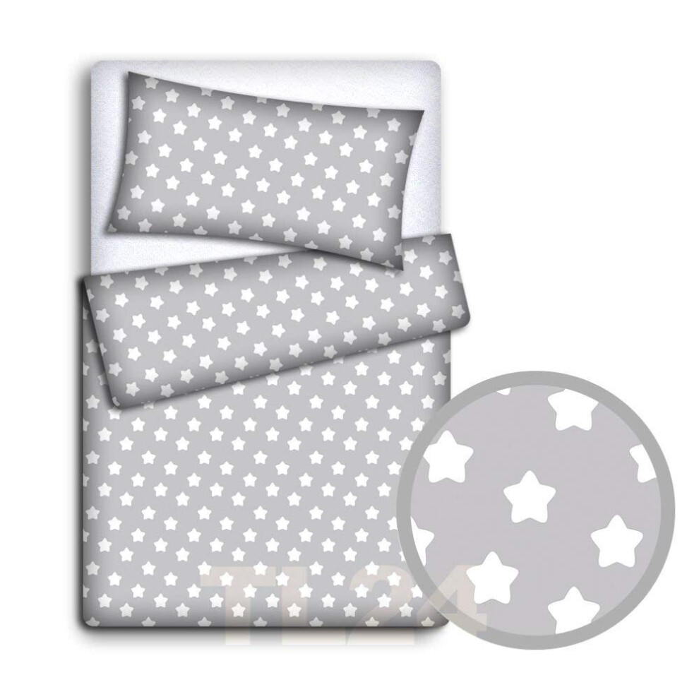 Baby Newborn Bedding Set Pillowcase + Duvet Quilt Cover 2 Piece to Fit Cot Crib Cradle Pram 135x100cm (Big white stars on grey background)
