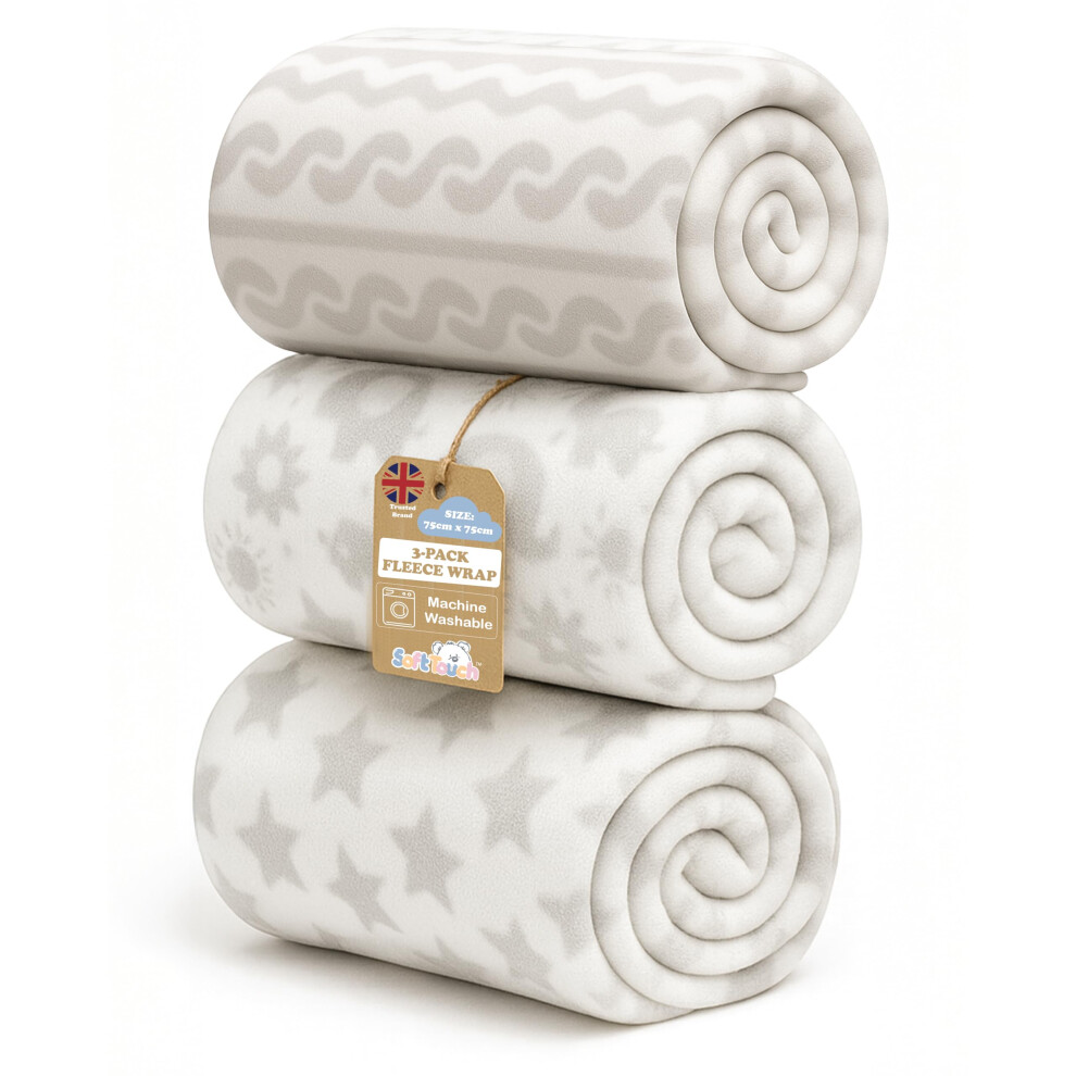 Soft Touch Newborn Essentials Baby Fleece Blanket Set – 3x 75x75cm Micro Plush for Comfort in Car Seat, Cot & Pram – Unisex for Baby Boys & Girls