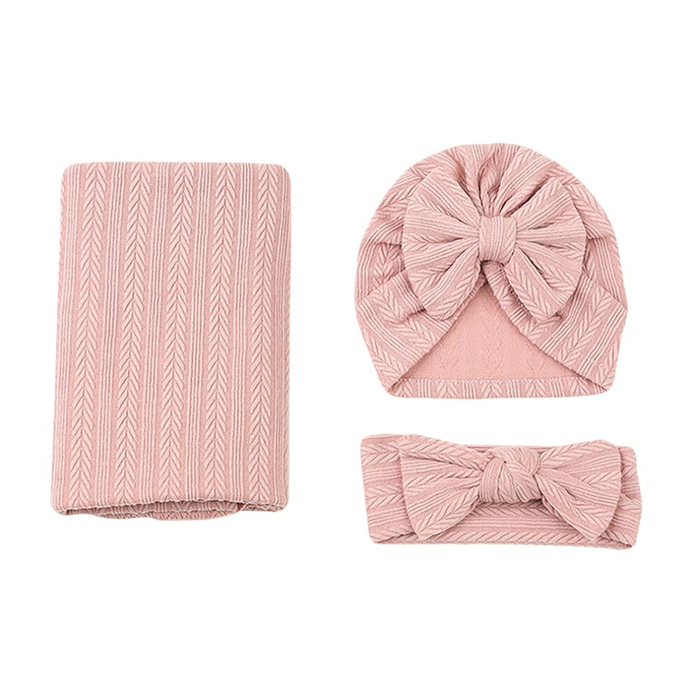 3 Pcs Newborn Receiving Blanket Baby Pram Blanket Wrap Infant Pink Swaddle Blanket Set with Matching Bow Hat and Headband