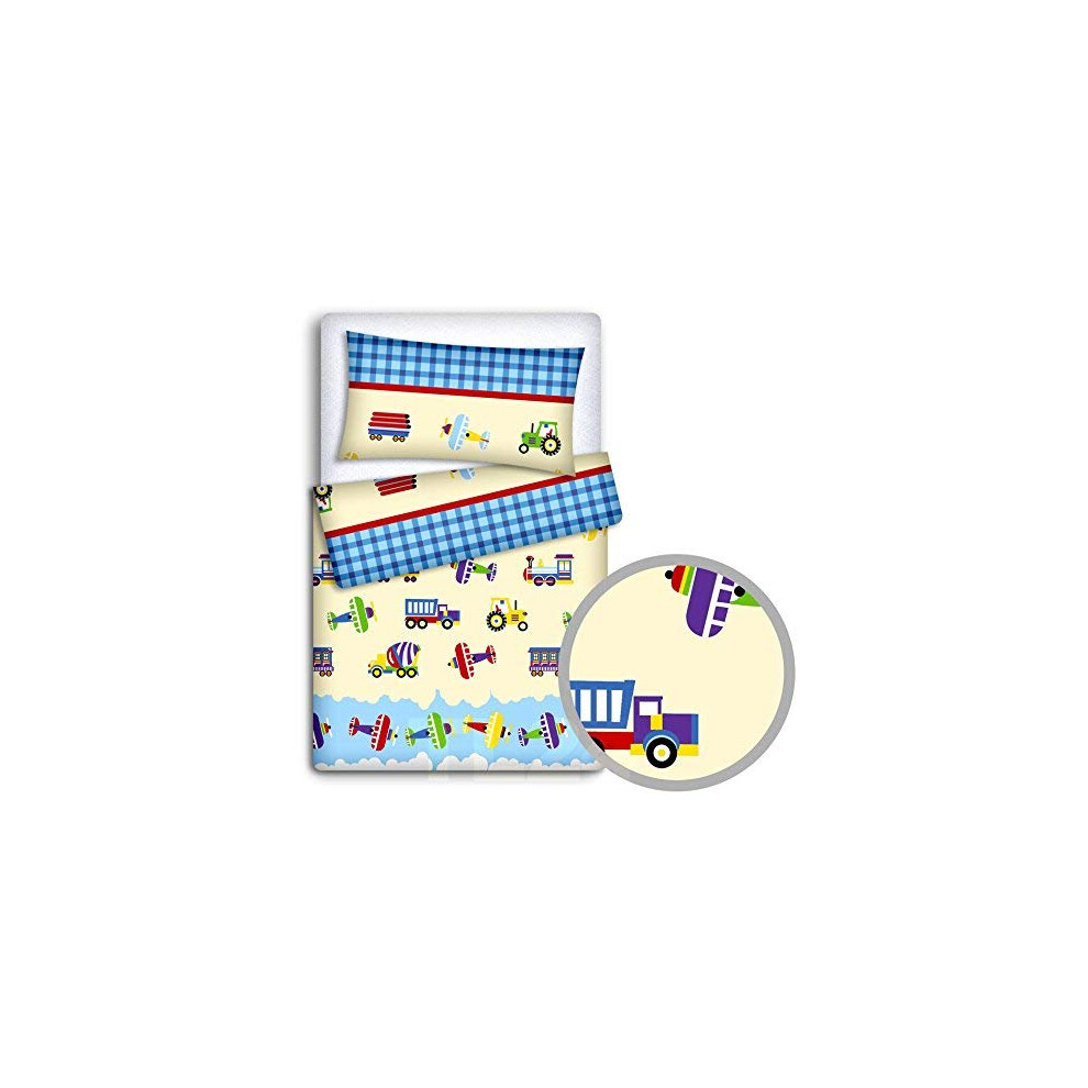 Baby Newborn Bedding Set Pillowcase + Duvet Quilt Cover 2 Piece to Fit Cot Crib Cradle Pram 120x90cm (Trucks)