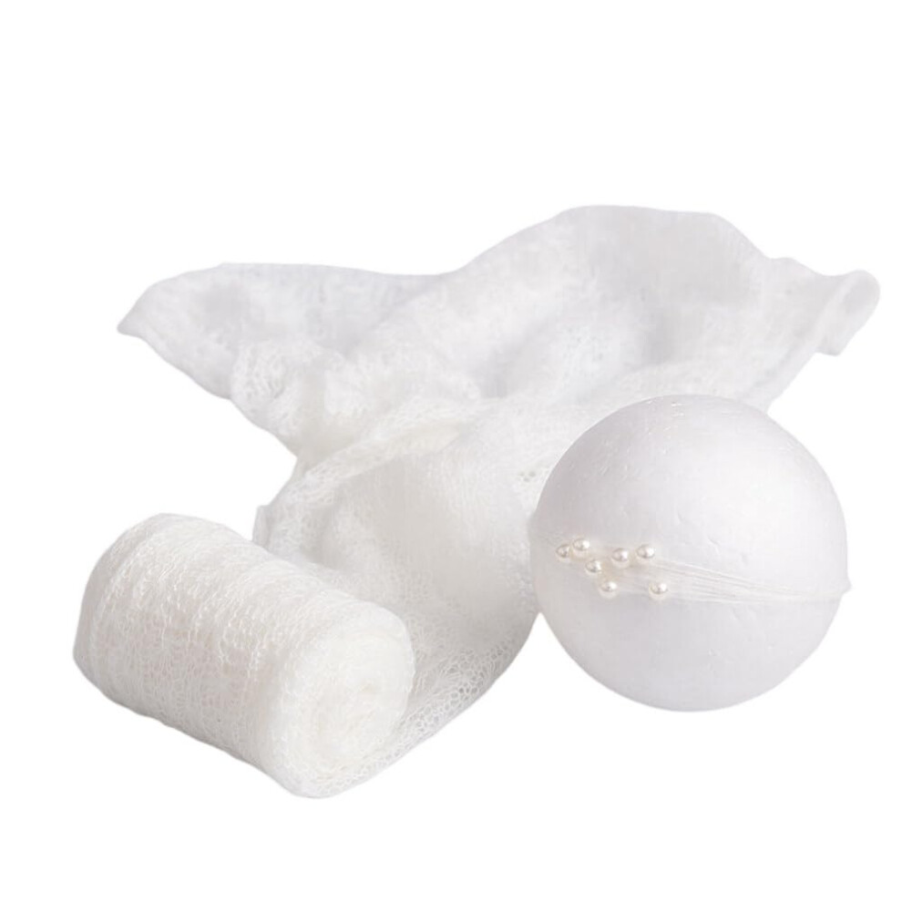 Newborn Photography Props Swaddle Blanket Headwear Set Soft Breathable White For Pram Crib DIY Photoshoot Basket
