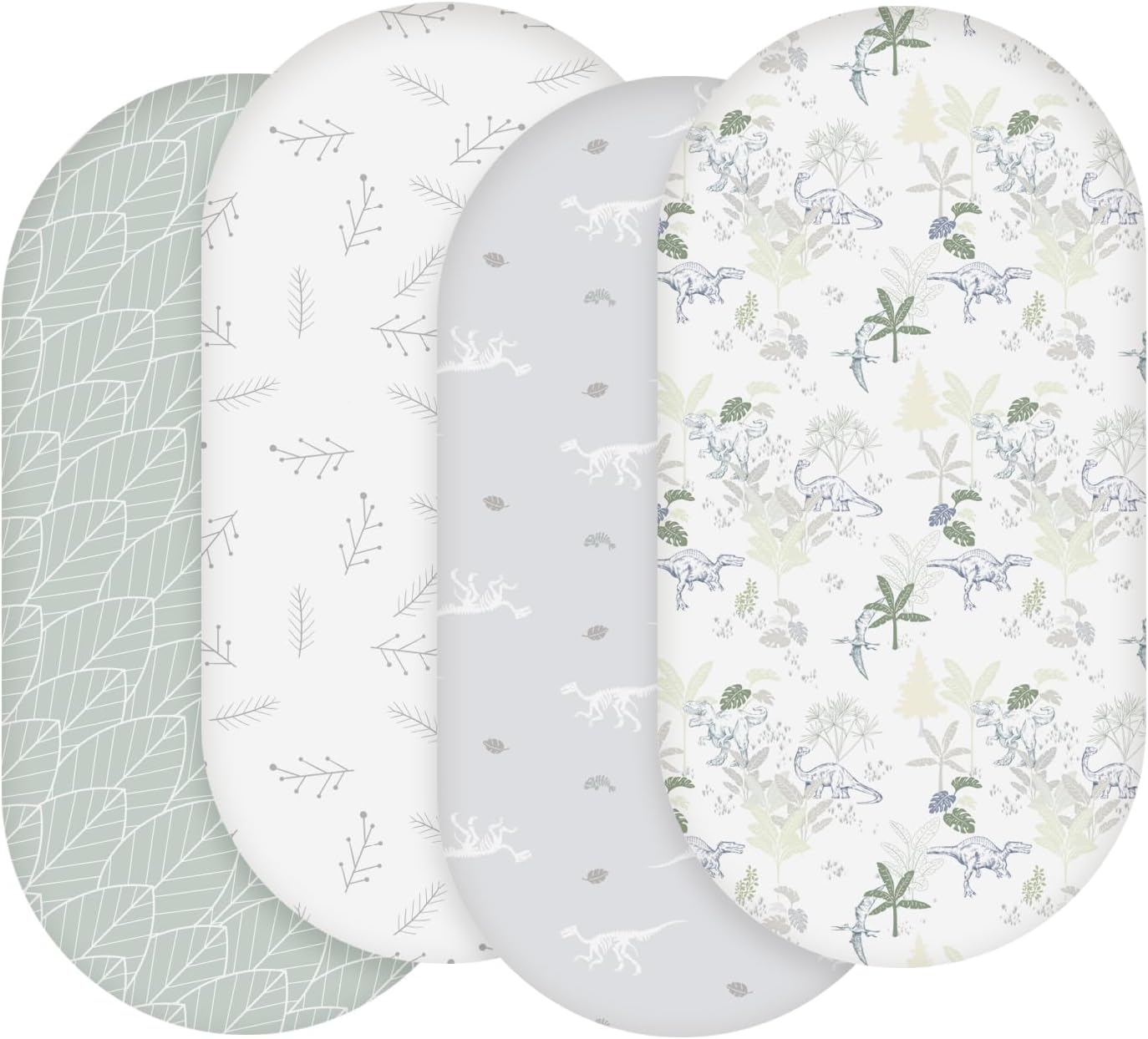 4Pack Moses Basket Fitted Sheets, Newborn Pram Sheets Fitted, 100% Microfiber O