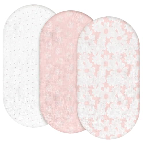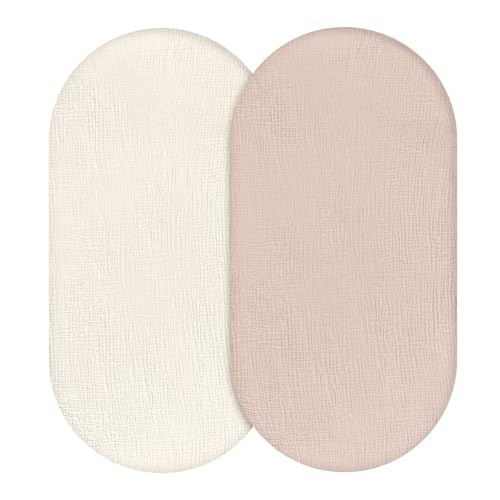 2 Packs Moses Basket Sheets 32”*17“ Newborn Pram Sheet Cozy and Lightweight Muslin Bassinet Fitted Sheet Cotton Crib Sheets Baby Fitted Sheets for Boy and Girl Oval, Hourglass & Rectangle Bassinet