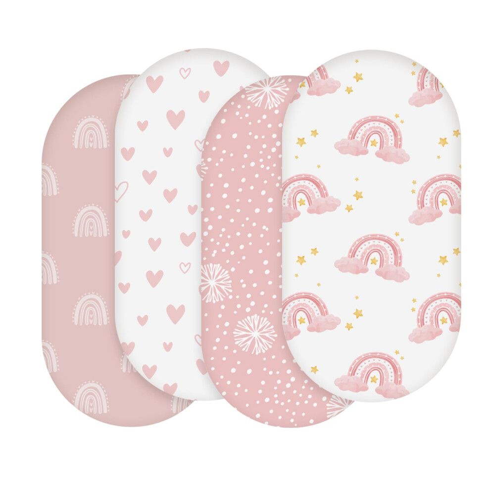 Soarwg Kids Moses Basket Sheets 82X41cm, Baby Bassinet Sheets Pram Sheet Fitted for Boy and Girl, Crib Fitted Sheets Oeko-tex100 Fit for Oval, Hourglass & Rectangle Bassinet 4 Packs Pink/White