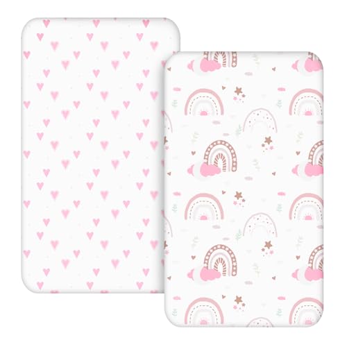 Moses Basket Sheets, Pram Sheets Fitted Cozy and Lightweight Oeko-tex100 Baby Bassinet Sheets for Boy and Girl, Crib Fitted Sheets Fit for Oval, Hourglass & Rectangle Bassinet Pink Heart