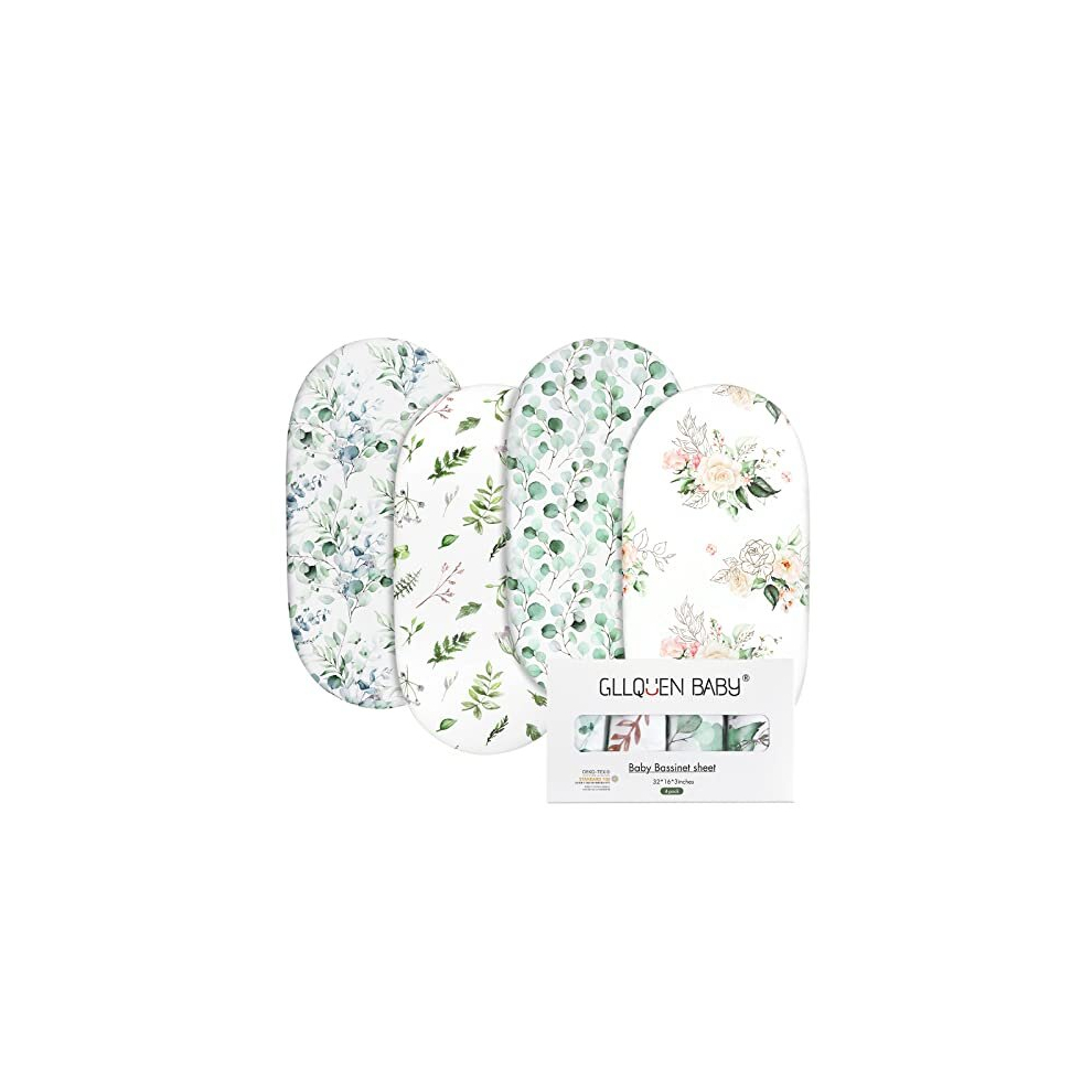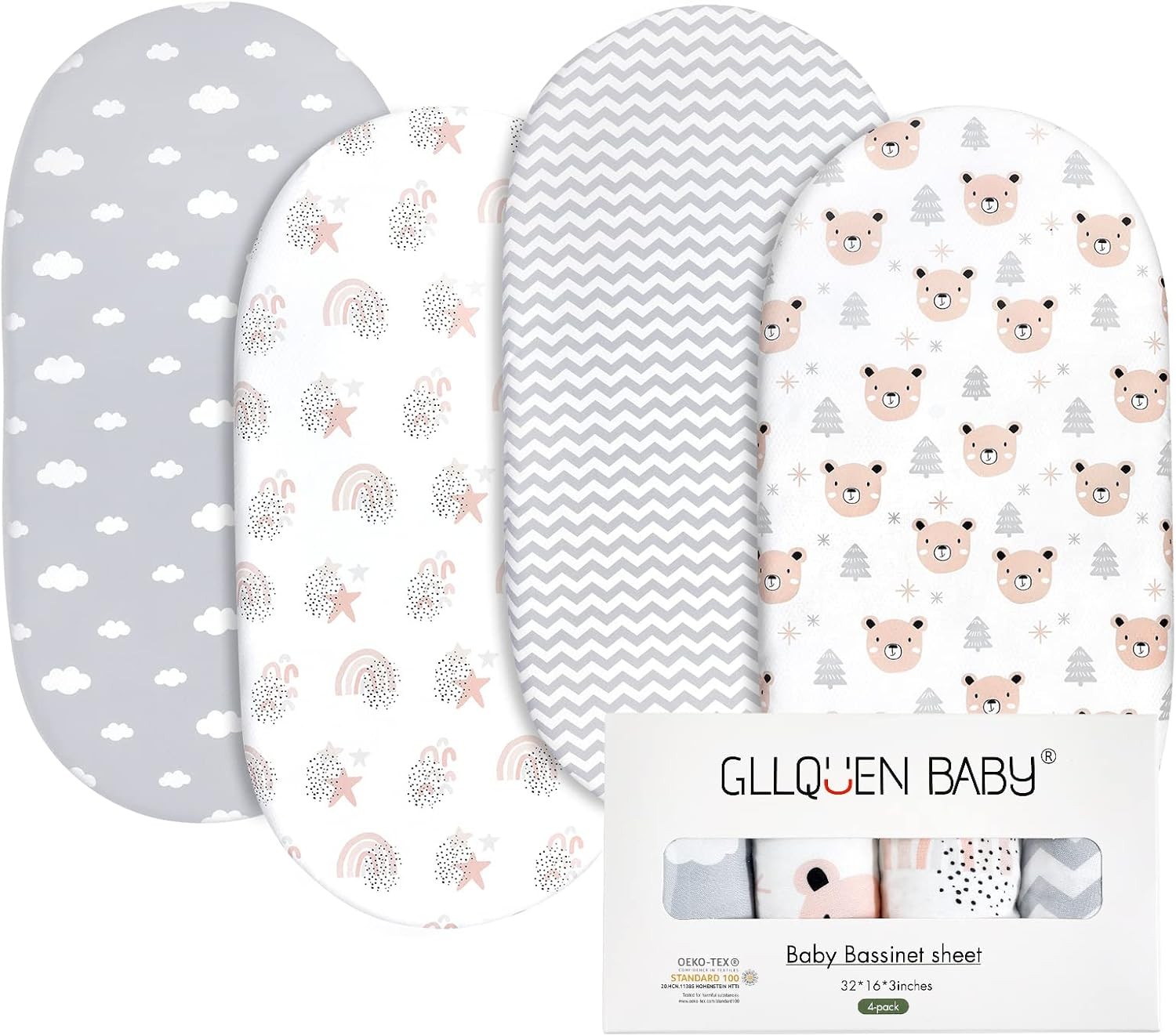 GLLQUEN BABY 4Pack Moses Basket Fitted Sheets, Newborn Pram Sheets Fitted, 100% Microfiber Oeko-tex100 Cozy and Breathable Crib Baby Bassinet Sheets for Boy and Girl, Easy Care Soft Fitted Sheet