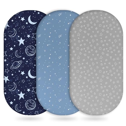 Unnivoll Moses Basket Sheets 3 Pack, Newborn Pram Sheet Fitted for Baby Boy and Girl, Super Soft & Breathable Crib Baby Bassinet Sheet Easy Care Dark Blue Planet